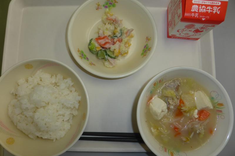 麻婆豆腐(四川)、酢豚(輪島ふぐ給食)は広東料理、ジャージャー麺・杏仁豆腐(北京)でオリンピック給食最終日(上海)を迎えました。ショーロンポー=肉汁ですが、給食は出来立てが難しいので、調理員さんに工夫して頂きました。1個30g程でいつもの唐揚げ1個とほぼ同じ重量です。食べ応えもありました。中身はひき肉(鶏・豚肉)とキャベツ・たまねぎにヒジキが少し入っています。苦手な児童は少数でした。切干大根は豚肉・小松菜・人参が具材です。ごはんにあう副菜です。