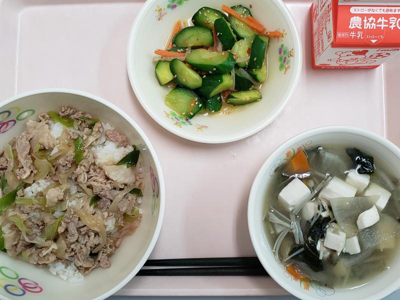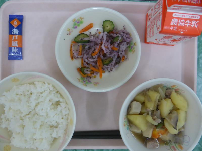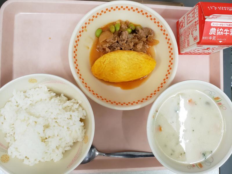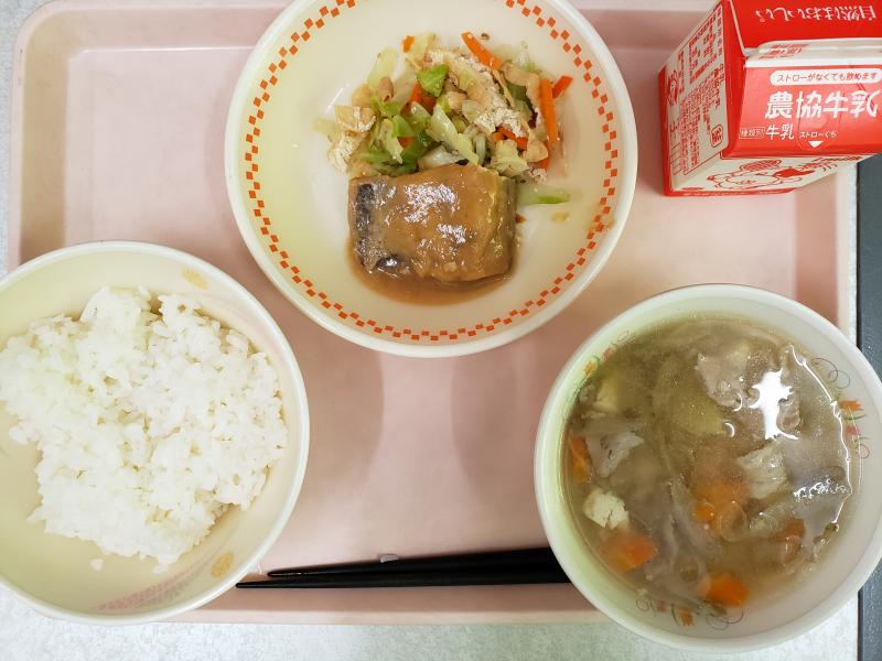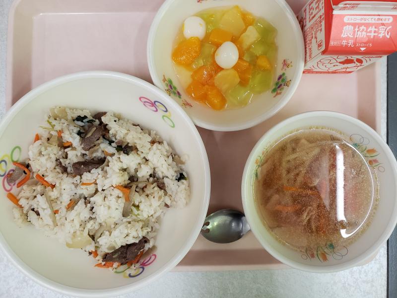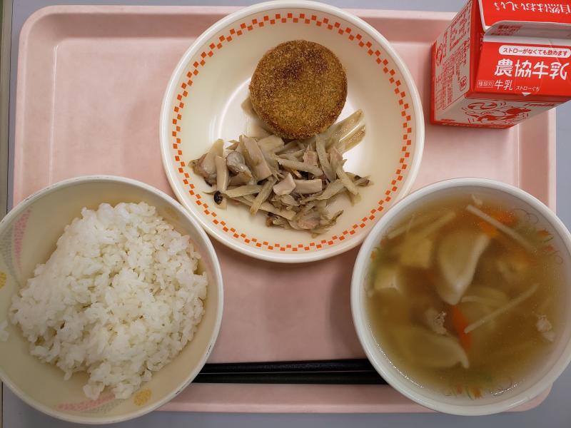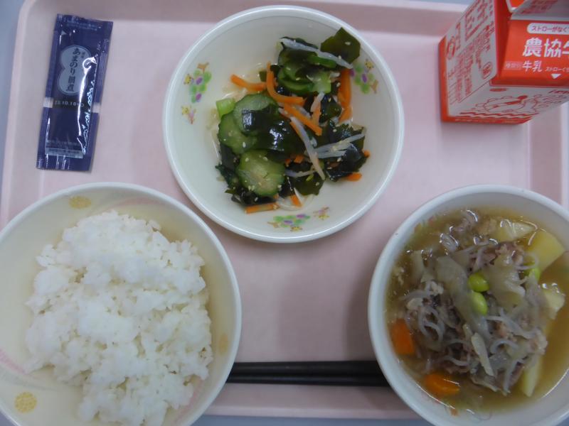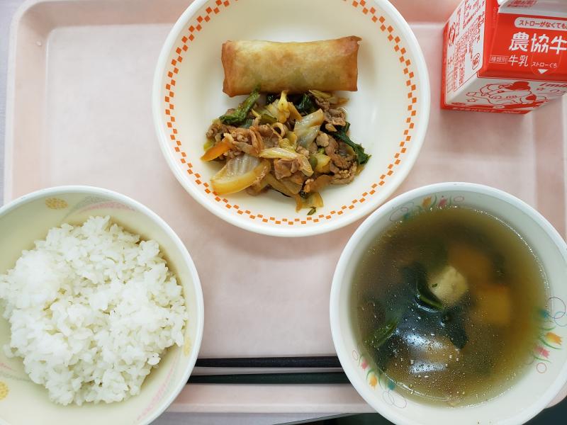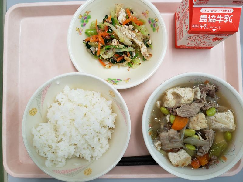 *中学年の量です。おかず皿の野菜炒めは6年空組さんの調理実習から頂いたものです。