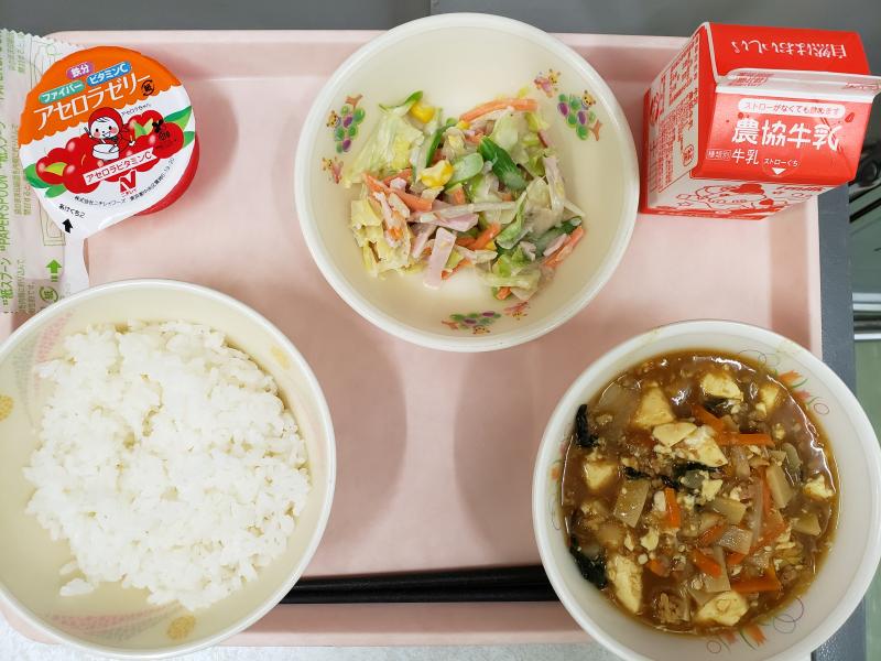 ・アセロラゼリー(金曜日はスポーツフェスタが午前中運動場で開催されたので、水分補給とビタミンC補充のデザートです)