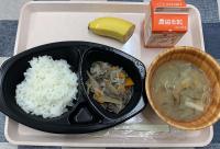 牛丼、もずくのみそ汁、バナナ、牛乳