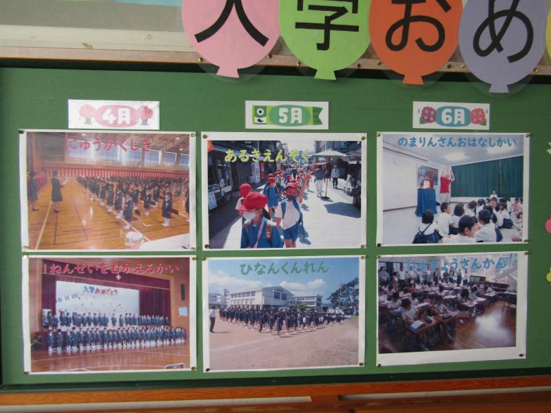 学校行事の写真が掲示されています。