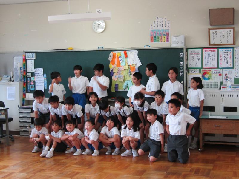 校歌を歌った後で、学習したことをクイズで紹介してくれました。