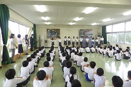 ランチルーム給食をしています。今週は3年生と4年生が使用しました。