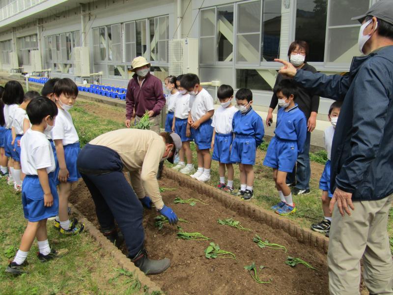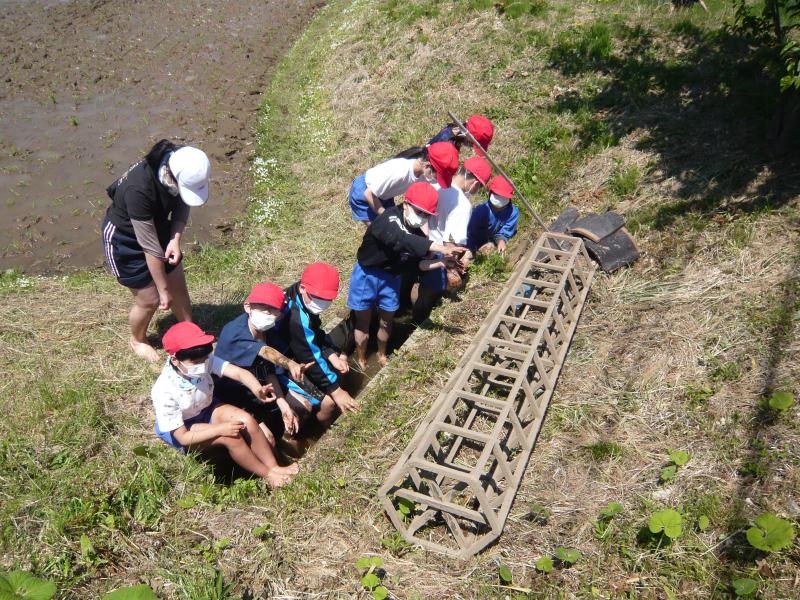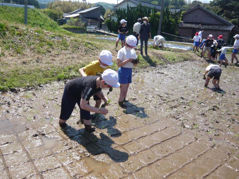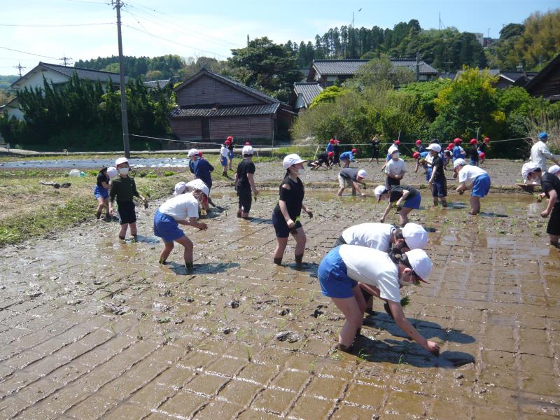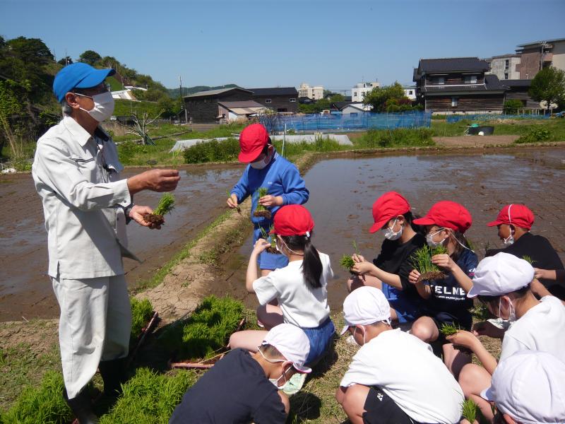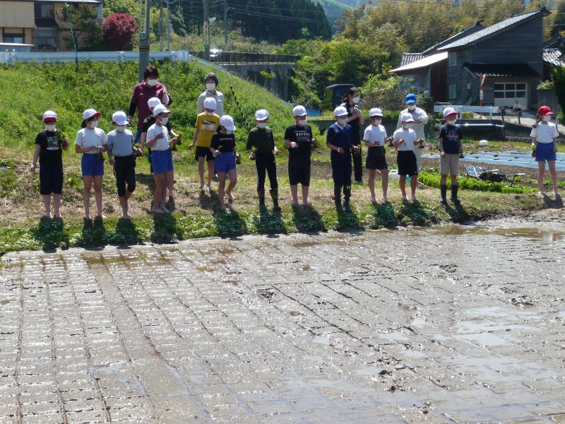 5月6日に田植え体験を行いました。初めに注意する点を教えていただきました。