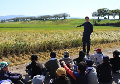 お世話してくださったJAの方々、米作り農家の披岸さん、地域の先生の穴田さん、本当にありがとうございました。