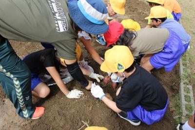 さつまいもを土から掘り出したとき、みんな笑顔がはじけていました。