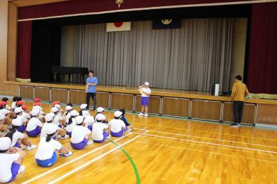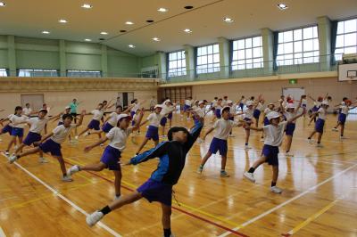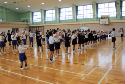 そして、整理体操の練習もしました。音楽と号令に合わせて、ストレッチをしました。