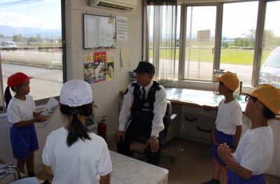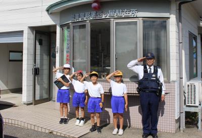 「壱ツ屋駐在所」の方には、毎朝、通学路の見守りをしていただいています。