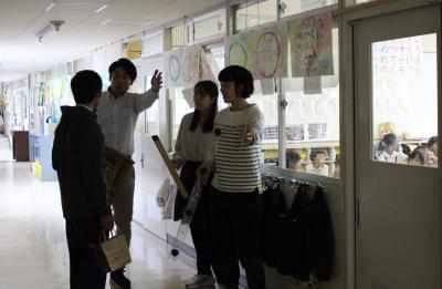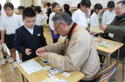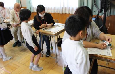 「生活科ボランティア」の方には、1年生に「昔あそび」を教えていただいたり、2年生の地区探検の引率補助をしていただきました。
