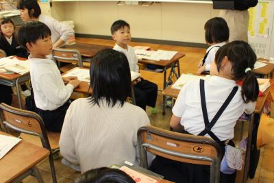 最後に、6年生です。6年生では、国語科で「海の命」の単元を学習しています。先日のHPでも紹介しましたが、自分たちでそれぞれ考えた課題を解決するために、1人で考えたり、他の人と話し合ったりすることをこれまでにしてきました。今日は、その考えた答えを同じ班の人に発表しました。発表を聞いた子も、その発表を聞いて思ったことなどを伝え合うことができていました。