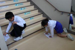 まずは、それぞれの担当場所に分かれて、廊下や階段、体育館の掃除。