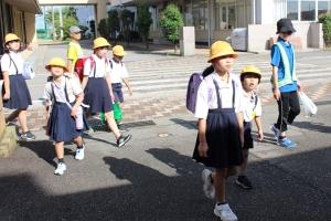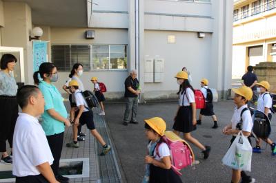 子どもたちも、たくさんの方が立っているのを見て驚いていましたが、みんな大きな声であいさつをしていました。立ってあいさつをされていた町の方も「去年よりも大きな声であいさつする子が増えましたね」とほめてくださいました。