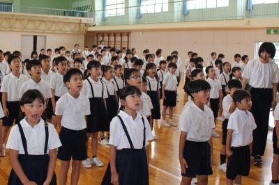 最後に、全校で校歌を歌いました。卒業式でもすばらしい歌声を聞かせてくれましたが、今日もはりのある大きな声で歌うことができていました。