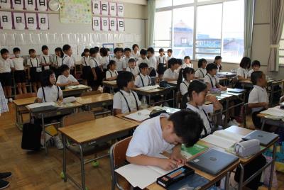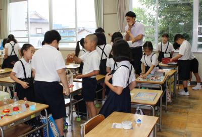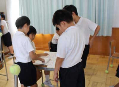 4年生は教室に戻り、5年生の授業の様子を見て思ったことなどの感想を書き出し、交流しました。感想の中には「先生の話を真剣に聞いていてすごいと思った」「すばやくグループで話し合いができていた」「自分たちも5年生のようになりたい」などいろいろな感想を書いていました。5年生から学んだことを、自分たちの授業でも実行していってもらいたいです。