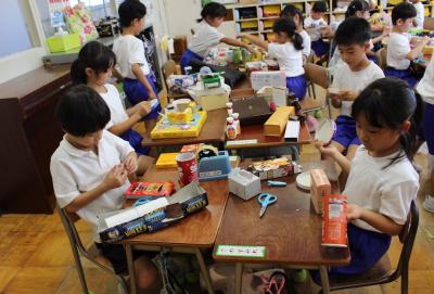 こちらは、下駄箱やカッパかけの名前シール貼り。