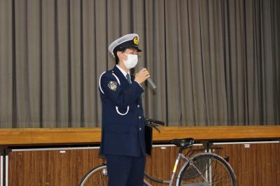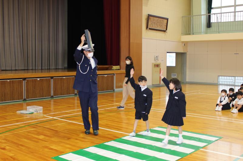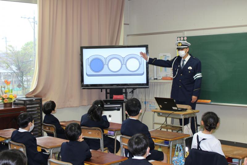 警察の方に来ていただき、信号機や標識の意味を確認したり、横断歩道の歩き方を教えていただきました。