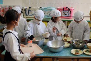 先生に教えてもらいながら、上手に盛り付けていきます。