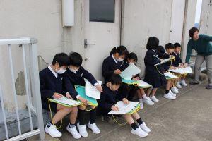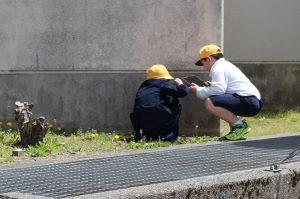 今日は、2年生が生活科の時間に、運動場で「春見つけ」を行いました。