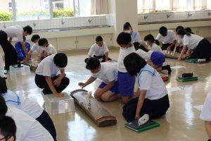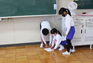 6年生から、雑巾がけの仕方を教えてもらっています。