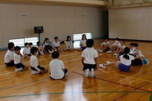 「ほぐし運動」のあとは、ホワイトボードの前に集合し、今日のめあての確認。