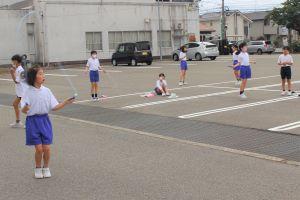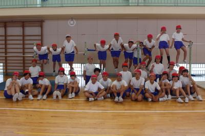 最後に、高学年が引く練習をしました。さすが高学年、どちらも全力で引き合い、なかなか勝負がつきませんでしたが、最後はわずかに赤が引いて、赤が勝ちました。本番はどちらが勝つのか楽しみです。
