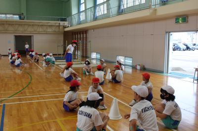 まず、綱引き練習をしました。最初に綱引きで気をつけることや動きの確認をしました。