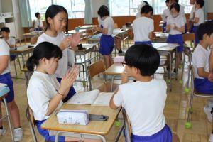 6年生の掃除リーダーが、掃除の振り返りをしています。
