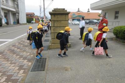 昨日の入学式を終え、今日から1年生も集団登校で元気に登校してきました。
