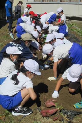 さつまいもを収穫しました。大きくてまるまるの芋がたくさんありました。