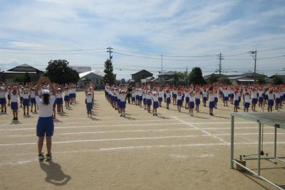 運動会の全校練習がありました。開会式と閉会式、準備・整理体操の練習をしました。