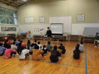 司書の北川先生の読み聞かせ。集中して聞いていましたよ。