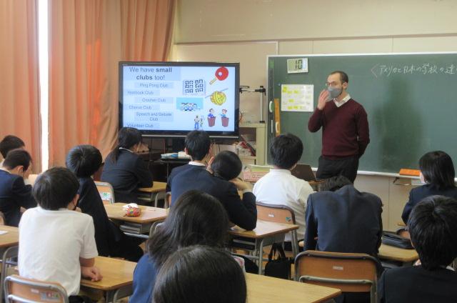 中学校のジョシュ先生が、日本とアメリカの学校の違いについてお話してくれました。