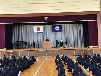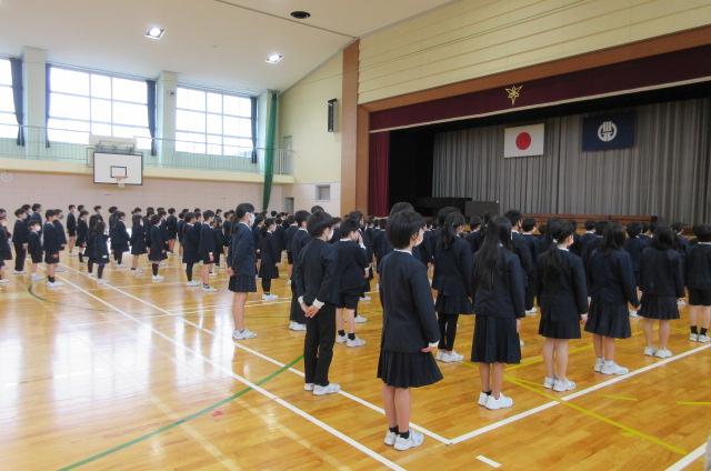 3年ぶりに全校そろっての卒業式となりました。インフルエンザ流行の中、卒業生は全員が参加できました。おめでとうございます。