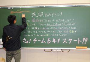 6年教室では、担任の先生が黒板に6年生に向けてメッセージを書いていました。