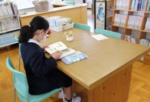 この児童は、すぐに2冊を決めて、貸出カードに記入して、静かに読書しています。