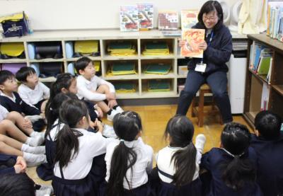 今日は、毎週木曜の図書ボランティアさんによる読み聞かせの日です。