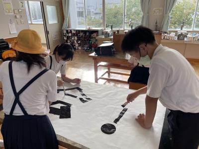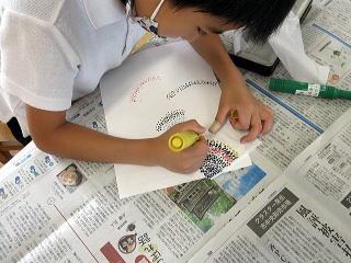 図工で「へんてこ山」の作品作りをしています。この日はマーブリングにも挑戦しました。