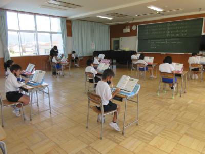 グループで音読の練習をしています。「はい、次は〇〇さん!」という感じで上手にしてました。