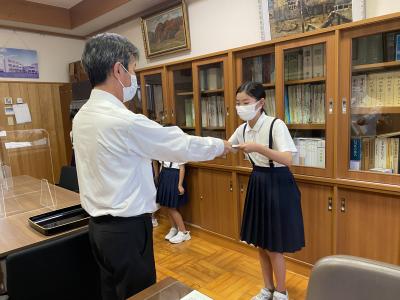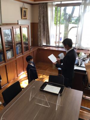 読書感想文コンクール入賞者6人が、校長室で表彰を受けました。