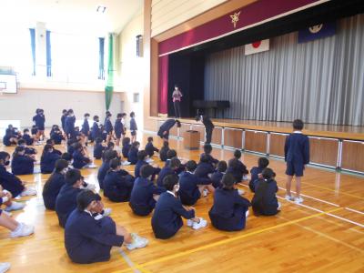 夏休みの科学作品の表彰式を行いました。素晴らしい研究4点(5人)が表彰されました。