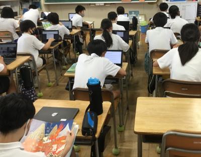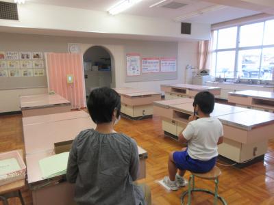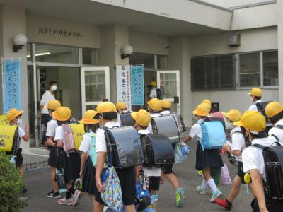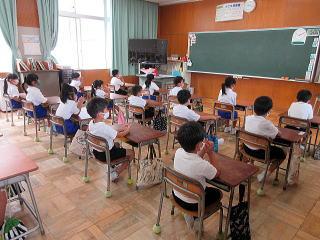 2学期の始まりです。みんな元気に登校しました。始業式は放送で行いました。1年生は、静かに、しっかりとお話を聞いています。