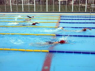 5・6年生による水泳記録会を行いました。25m・50mに分かれれ、自由形、平泳ぎの記録をはかりました。