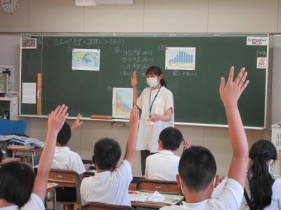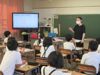 中学校の栄養教諭 染伊先生と「お米について知ろう・お米のよさを知ろう」を学習しました。