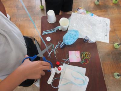 「せかいでひとつわたしのおもちゃ」を作っています。一人一人みんなちがっていてアイデアいっぱいです。