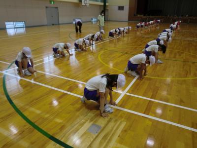 運動会の練習が少しずつ入ってきています。高学年の表現の練習です。