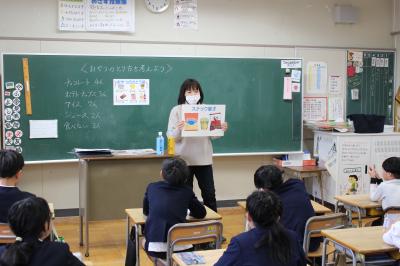 さらに、いろいろなカロリーが書かれたおやつの中から、200キロカロリー以内になるように組み合わせを考える「おやつバイキング」のワークシートをしました。ルールは「200キロカロリー以内」「2・3個組み合わせる」「飲み物を入れる」の3つでした。どの子も全部で200キロカロリー以内になるように、組み合わせを工夫して考えていました。中には、1個全部食べると200キロカロリーをオーバーしてしまうので、半分だけ食べるなどの工夫をしている子もいました。そして、考えた組み合わせをペアの人に伝える活動もしました。