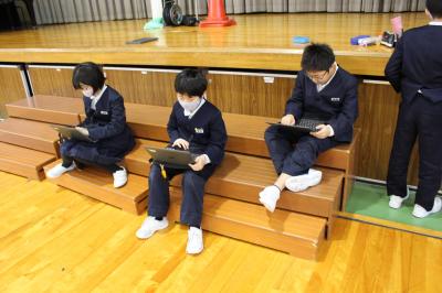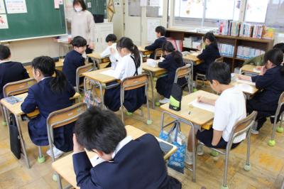 5年生は、卒業生に向けての「別れのことば」と歌の練習です。