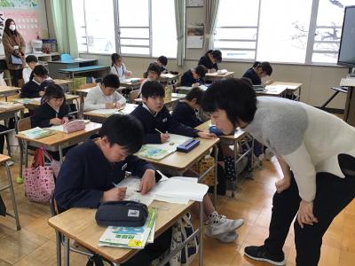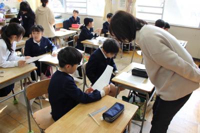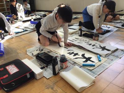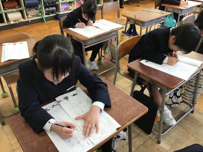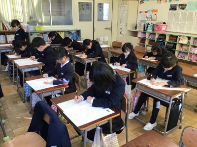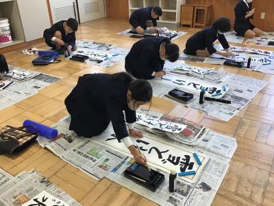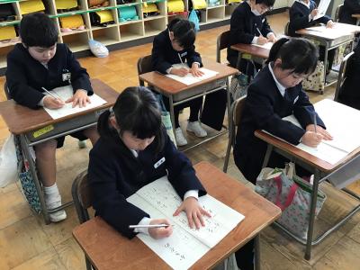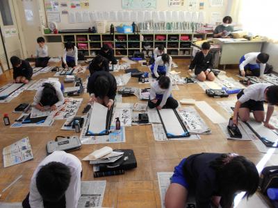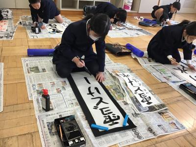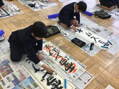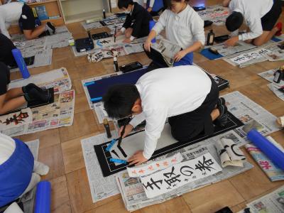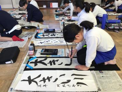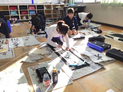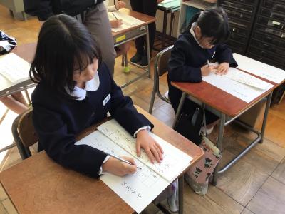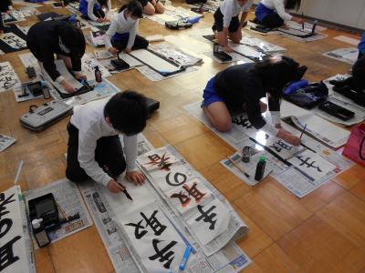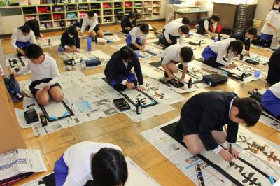 どのクラスも、落ち着いたとてもよい雰囲気の中、書き初めをすることが