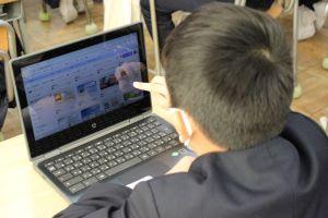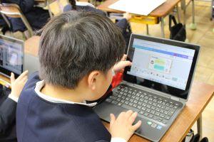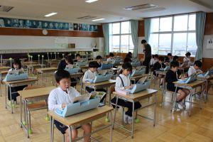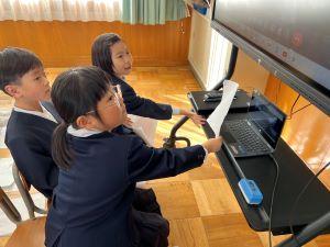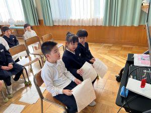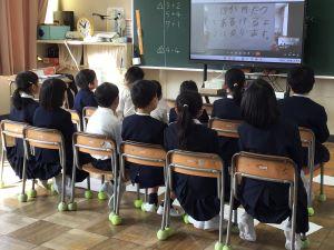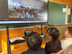残念ながら、インフルエンザでお休みの児童が多いクラスは、教室からオンラインで参加となりました。