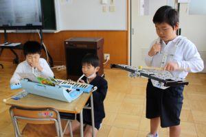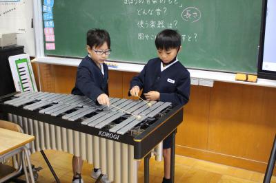 鉄琴と鍵盤ハーモニカのパート練習をしてから、合わせています。